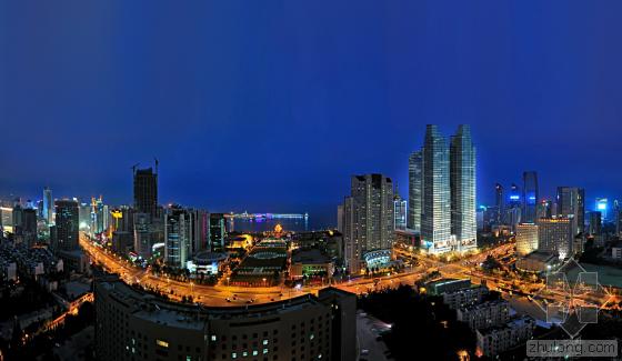 國際貿(mào)易中心位于香港中山路與山東路的交匯處,地理位置十分優(yōu)越,堪稱“鉆石地 段”。本項目中的建筑尺度明確確立了青島的城市輪廓線,尤其是從水上望去、以山脈為背景時的城市輪廓線。